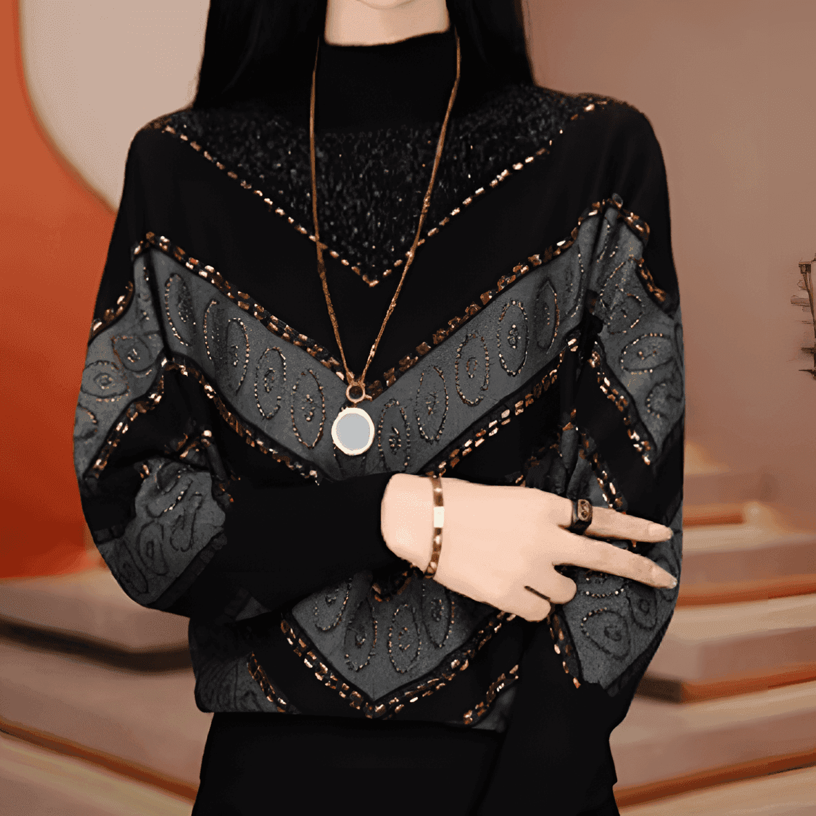 【買一送一】德絨印花燙鑽上衣,柔軟舒適,不挑身材,免運費