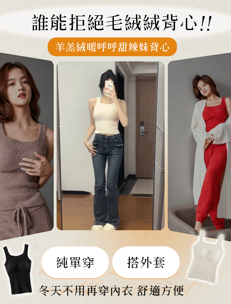 純欲羊羔絨胸墊背心 自帶胸墊單穿外穿都超搭 六種顏色駕馭各種場景 冬天就像小暖爐