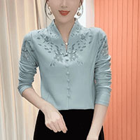 [1] 氣質V領印花加絨打底衫 冬季新款時尚百搭減齡顯瘦衫衣,1入組 NT$1198