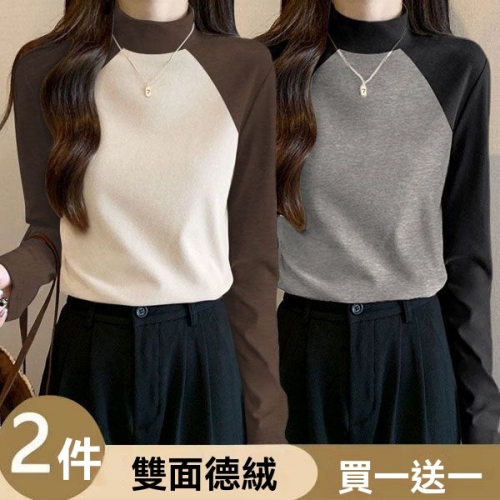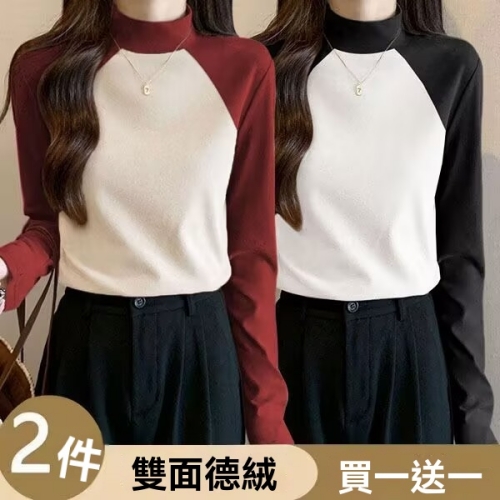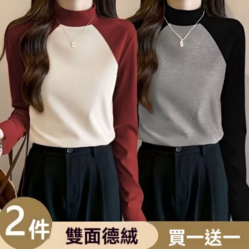 女士撞色德絨打底衫 柔暖德絨 鎖住冬日溫度 撞色設計點亮單調 修身剪裁顯瘦百搭 內外皆宜 輕鬆穿出優雅層次感