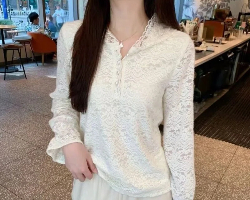 高級感拼接蕾絲花邊連帽針織衫2025新款時尚休閑疊穿加絨小帽衫