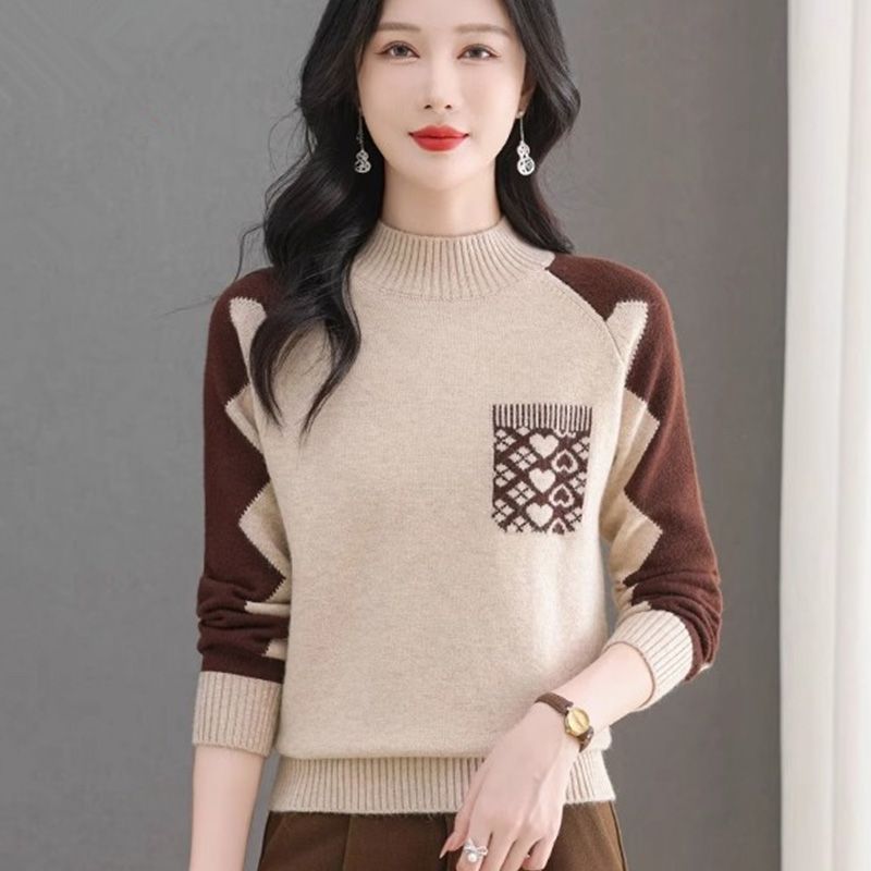 半高領拼色針織衫 面料輕盈舒適 觸感柔軟貼膚 寬松版型耐穿不起球 上身洋氣又百搭 穿著自在又大方!