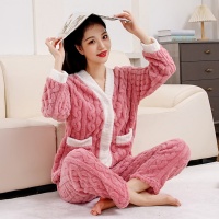 珊瑚絨睡衣套裝,長袖+長褲兩件套,開衫保暖自帶口袋,可居家可外穿,完全不挑身材!誰穿誰好看!