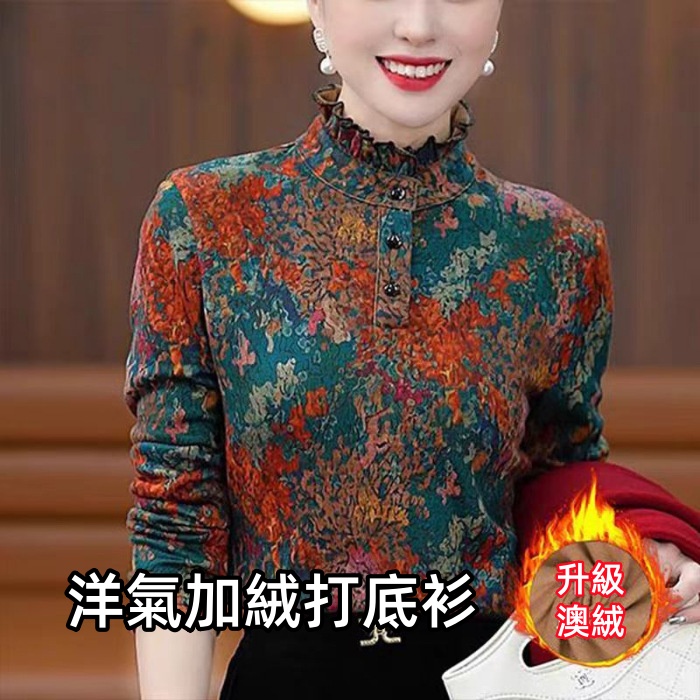 【洋氣五彩加絨打底衫】加絨打底,保暖軟糯,荷葉領半高領設計,細節盡顯洋氣,讓媽媽在冬日溫暖又亮眼