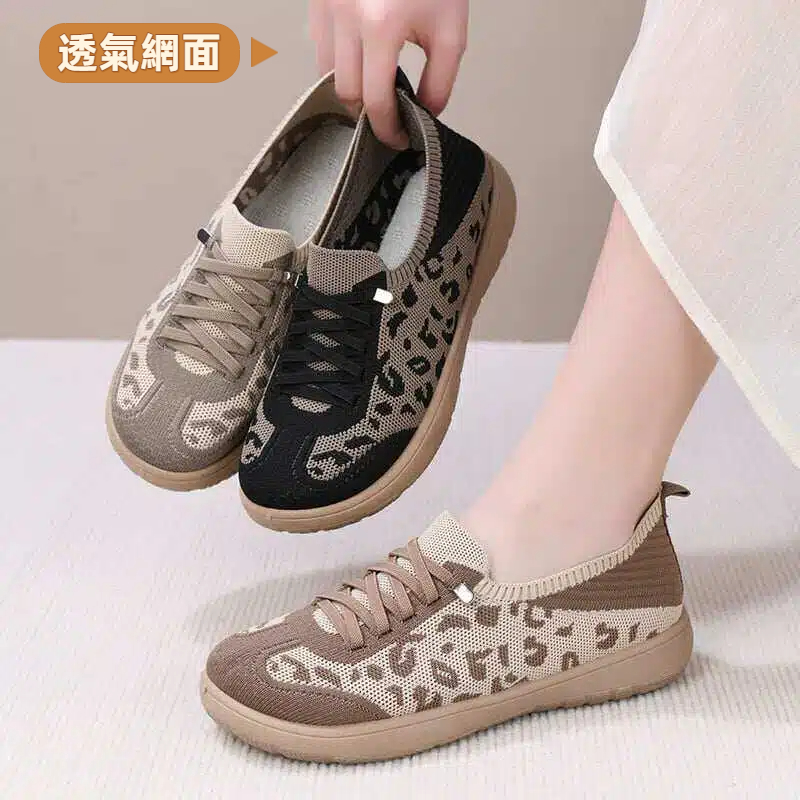 豹紋飛織網面德訓鞋,平底舒適一腳蹬,防滑耐磨,透氣不悶不臭腳!